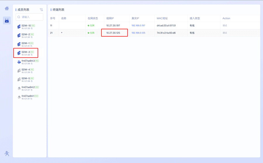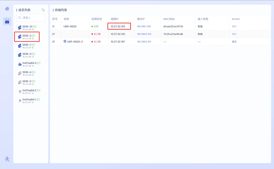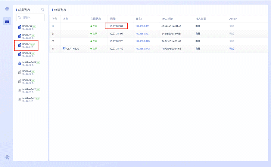 ③批量处理:搭建网络就像搭积木鼠标一拖一拽,“新同事”秒入网,操作简单,连行政小姐姐也能轻松拿捏组网。④自动认亲:成员下终端自动入组网网关成员自带"母鸡带崽"属性,成员下的PLC、摄像头等网库或WiFi类终端(DHCP/静态IP)均可自动入网,告别手动配置。