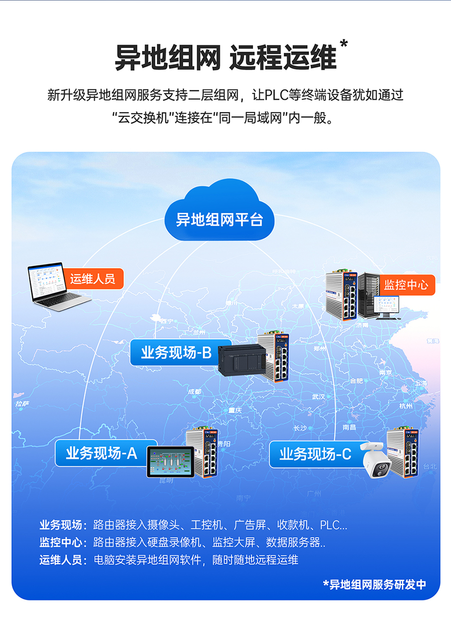●【支持新异地组网*】SD-WAN二层组网:跨区域设备如处同一局域网,豪赠1000GB组网流量!