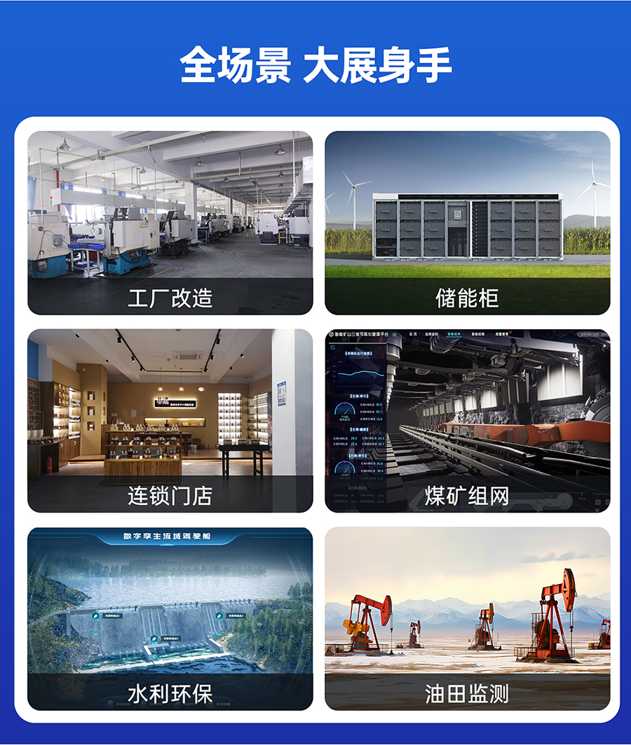 ▸智慧工厂(设备群控)| ▸油田监测(无人值守)| ▸储能柜管理(多协议接入)▸水利环保(边缘采集)| ▸连锁门店(异地运维)