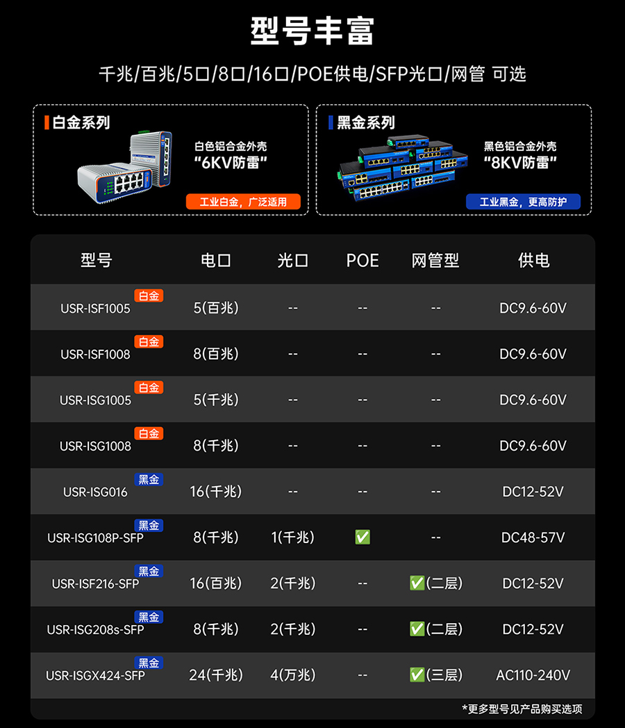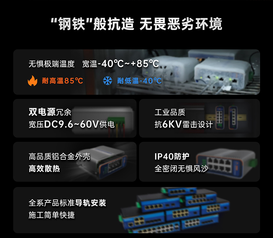 核心价值: 延续热销黑金系列高防护、抗造、稳定基因,性能不减,价格大幅降低,为企业提供更高性价比的工业交换机选择。