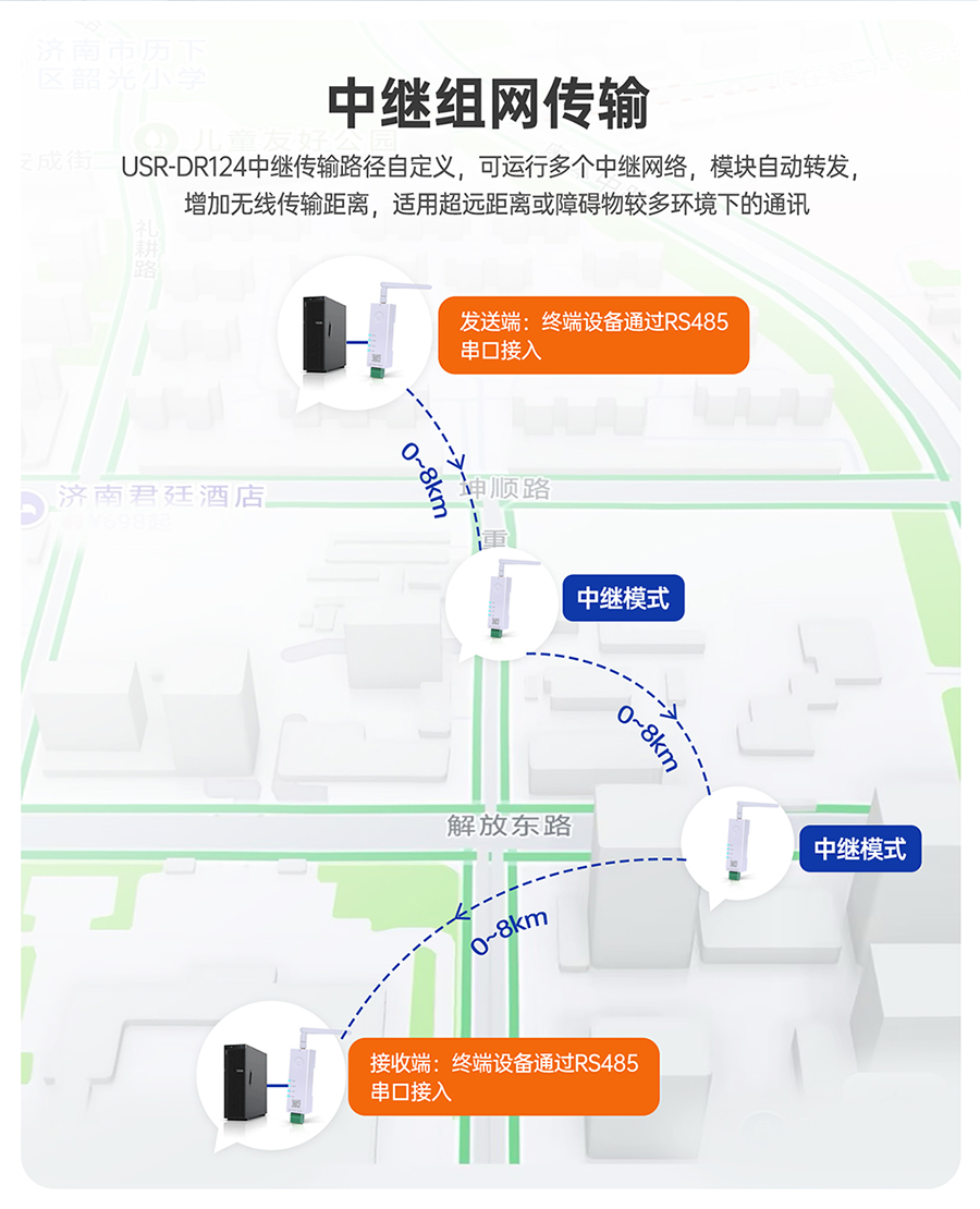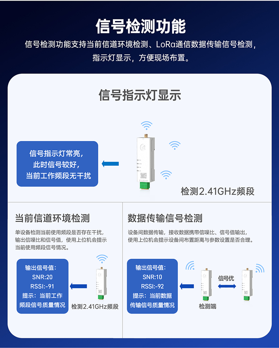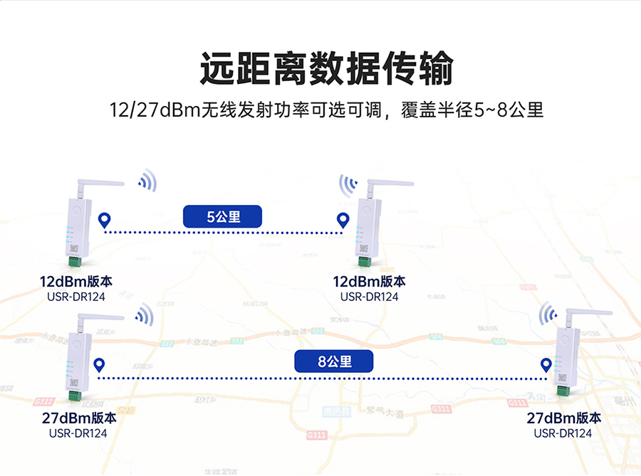 测试条件:晴朗、空旷环境,天线增益3dBi,高度大于2m