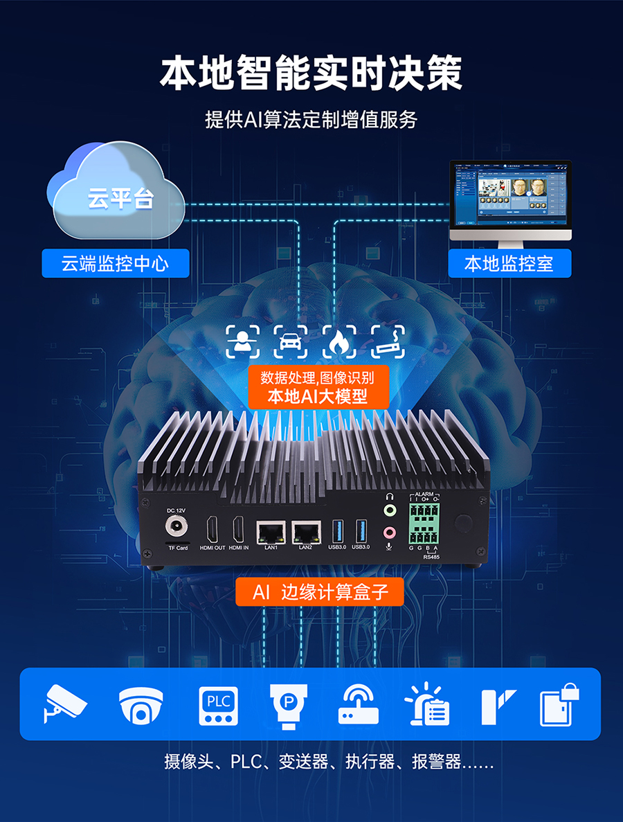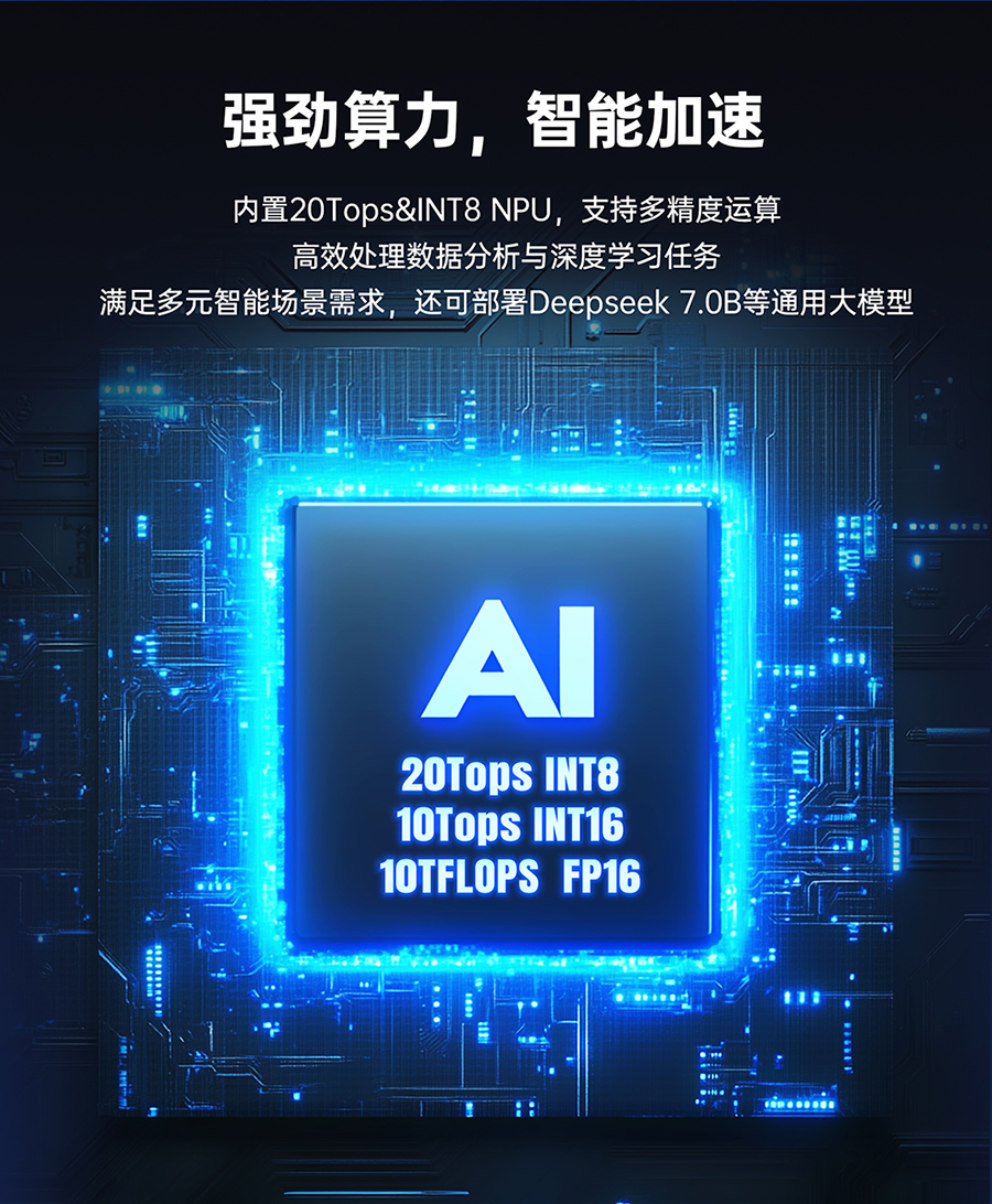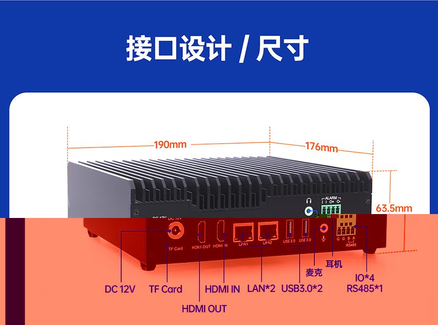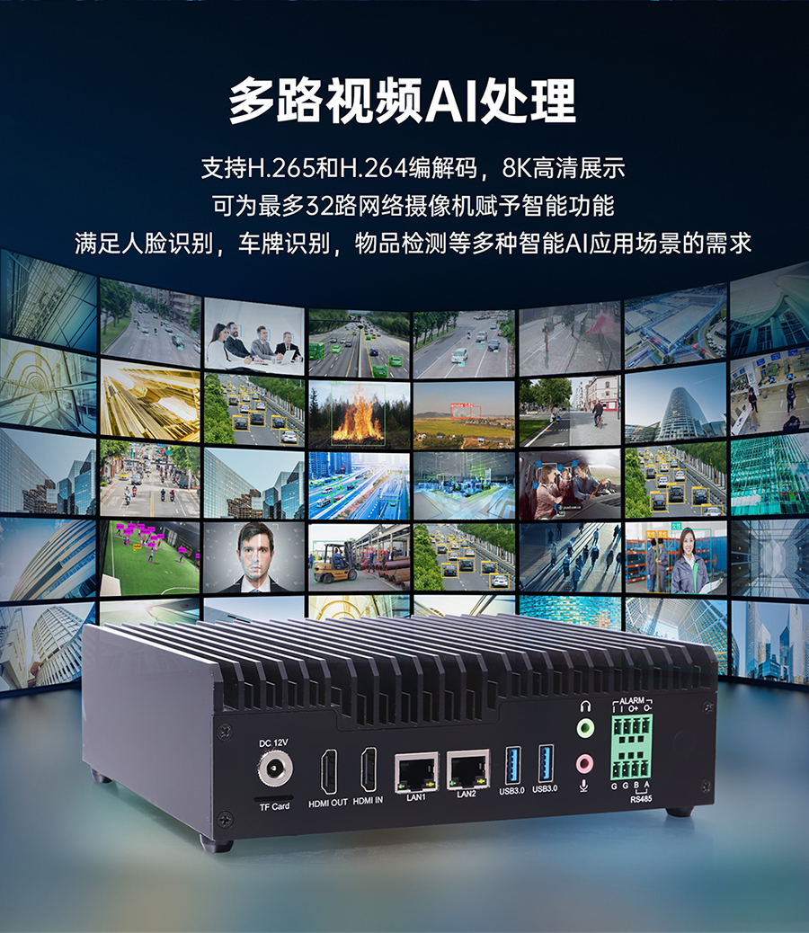 Ubuntu系统,8核64位处理器 6Tops算力,32路视频分析 3网口4USB,HDMI输入和输出