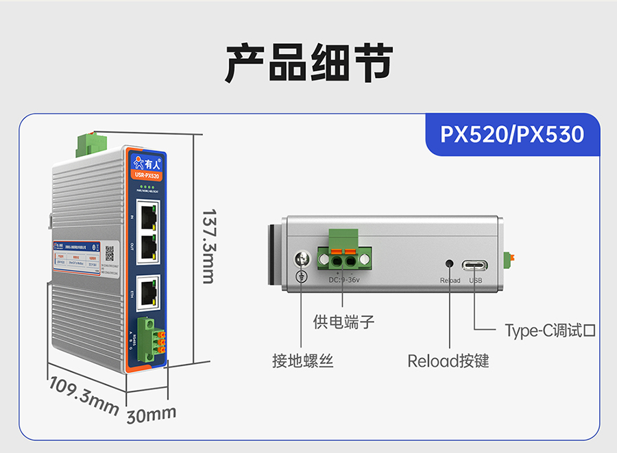 137.3*30*109.3mm(L*W*H) (PX520/PX530,含端子和导轨)